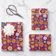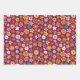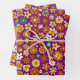 60er Retro-Blumendecoup lila Farbgeschenk Geschenkpapier Set
