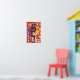 Blume Kinderslogan mit einem coolen Thema Retro-Poster mit einem 60er/70er Thema mit einer Blume Kind auf einem blühenden bunten Hintergrund in leuchtenden Farben. Ideal für Ihre Vintage Retro-Dekoration oder für den Hippie-Psychedelic-Stil.