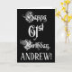 An der Vorderseite dieses üppigen und luxuriösen Geburtstags-Thema Grußkarte Design bietet die Nachricht "Happy 61st Birthday", in aufwändigen Skripttext, auf einem schwarzen Hintergrund. Die Innenseite hat eine individuelle Geburtstagsgrüßnachricht, oder könnte gelöscht und leer verlassen werden, wenn eine Nachricht von Hand geschrieben werden soll. Eine extravagante, personalisierte Geburtstagskarte wie diese könnte eine respektable Art sein, Geburtstagsgrüße an jemanden zu senden, der seinen einundsechzigsten Geburtstag feiert. [~Z0000554]