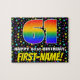 Dieses lustige und optimistische Geburtstagsthemenkonzept mit einem vielfarbigen Regenbogenspektrum, inspirierten Farbverlaufsmustern und der Meldung "HAPPY 61st BIRTHDAY", sowie einem benutzerdefinierbaren Empfängernamen zeigt eine große Zahl "61". Der Hintergrund weist ein fett gefärbtes, mehrfarbiges Sternmuster auf. Ein lebendiges, anpassbares Geburtstagsrätsel wie dieses könnte eine lustige Art sein, Geburtstagsgrüße an jemanden zu senden, der seinen einundsechzigsten Geburtstag feiert. [~Z0000607]