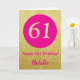 61. Happy Birthday Hot Pink und Gold Glitzer Karte