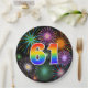 Diese farbenfrohe, lustige und fröhliche Papierplatte zeichnet sich durch eine große Zahl "61" aus, die eine inspirierte Farbgebung des Regenbogenspektrums enthält. Es zeichnet sich auch durch ein lebendiges und aufregendes Feuerwerk inspiriert. Es hat einen schwarzen Hintergrund. Teller wie diese können bei einer Feier benutzt werden, um jemandes 61. Geburtstag zu beobachten, einen 60. Jahrestag zu begehen oder ein weiteres 60. [~Z0000490]