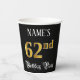 Dieses extravagante und luxuriöse Geburtstagsdesign besticht durch einen individuelle Name und die Botschaft "62. Geburtstagsparty". Die große Zahl "62." hat ein in Gold inspiriert Farbmuster von Imitation/Imitaten, die Wörter "Geburtstagsparty" sind im verzierten Skriptstil gehalten, und der Hintergrund ist standardmäßig schwarz gefärbt (auch wenn er angepasst werden kann). Verzierte, elegante Papiertassen wie diese können bei einer Geburtstagsfeier/einem Party zur Ehrung des zweiundsechzigsten Geburtstags verwendet werden. [~Z0000567]