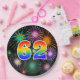 Dieses lustige, farbenfrohe und fröhliche Papier-Platte-Design verfügt über eine große Zahl "62" mit einem Regenbogenspektrum inspirierte Muster. Es zeichnet sich auch durch ein lebendiges und aufregendes Feuerwerk inspiriert. Es hat einen schwarzen Hintergrund. Teller wie diese können bei jemandem auf seiner zweiundsechzigsten Geburtstagsparty, einer zweiundsechzigsten Geburtstagsfeier oder einer anderen zweiundsechzigsten Veranstaltung verwendet werden. [~Z0000490]