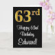 63. Geburtstag ~ Elegante Luxuriöse Imitate Gold L Karte
