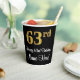 Dieses luxuriöse, elegante und stilvolle Geburtstagsdesign besticht durch eine große Ordnungsnummer "63." mit einem vergoldeten Imitat/Imitation, der Geburtstagsgrüßbotschaft "Happy 63. Geburtstag" und einem individuelle Name in einem skriptartigen Schriftart. Es hat auch einen schwarzen Hintergrund. Papiertassen wie diese können zum Feiern des dreiundsechzigsten Geburtstages von jemandem benutzt werden. [~Z0000538]