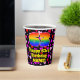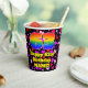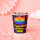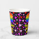 This colorful and cheerful birthday-themed paper cup design features a large number “63” with a rainbow spectrum gradient inspired pattern, along with the message “Happy 63rd Birthday,”, and a custom name. The background features a pattern of purple, pink, and red heart shapes. Joyful, fun paper cups like this might be fun to have at a birthday party/celebration being held to honor somebody’s sixty third birthday. [~Z0000548]