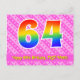 Die Vorderseite dieses fröhlichen, fröhlichen und liebevollen Geburtstags-Postkartendesigns weist eine große Zahl "64" mit einem inspirierten Regenbogengefälle auf, zusammen mit der Meldung "Happy 64 th Birthday" und einem bearbeitbaren Empfängernamen. Die Vorderseite hat zusätzlich ein helles, dunkelrosa und hellrosa gestreiftes Muster mit Herzformen. Auf dem Rücken befindet sich eine benutzerdefinierte Geburtstagsgrüßmeldung, oder es kann sein, dass sie gelöscht und leer verlassen wird, wenn eine Nachricht von Hand geschrieben werden soll. Eine personalisierte Geburtstagskarte wie diese ist vielleicht eine lustige Art, jemandes vierundsechzigsten Geburtstag zu feiern. Postkarten wie diese können auch benutzt werden, um die Gäste zu einer Geburtstagsparty für jemanden einzuladen, der 64 Jahre alt ist. [~Z0000449]