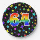 Diese farbenfrohe, lustige und fröhliche Papierplatte zeichnet sich durch eine große Zahl "64" aus, die eine inspirierte Farbgebung des Regenbogenspektrums enthält. Der Hintergrund weist ein Muster von bunten Sternformen auf. Teller wie diese können sich bei einem Party zum 64. Geburtstag von jemandem, zum vierundsechzigsten Geburtstag eines Paares oder zu einem vierundsechzigsten Geburtstag, oder einer anderen vierundsechzigsten Veranstaltung amüsieren. [~Z0000493]