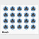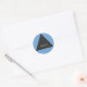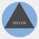 Runder Zap Sticker mit schwarzem Dreieck mit blauem Hintergrund und Roman 657 in Weiß.