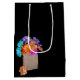 Farbenfroher Strauß in einem braunen Papiersack auf schwarz zum 65. Geburtstag. Text auf dem Sack kann bearbeitet werden.