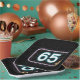 Glühendes Neonmarquee-Schild mit einem Stern an einer dunklen Ziegelmauer für die 65. Geburtstagsparty