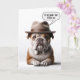 Ein Bulldogge sitzt ruhig und trägt eine stilvolle Fedora, die auf weißem Hintergrund zum 65. Geburtstag abgeschieden ist. Alle Texte können geändert werden und das Alter.