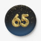 Goldene Mylar-Party-Ballons auf Gradienten schwarz und blau mit Goldstar Confetti zum 65. Geburtstag oder Jubiläum Party