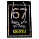 Dieses blumengeschmückte, im Garten inspiriert Geburtstagsgeschenk-Design hat die Meldung "Happy 67 th Birthday", zusammen mit einem bearbeitbaren Empfängernamen. Die große Zahl "67" plus die Blume-Icons der Ränder. Ein lustiger Geburtstagsgeschenksack wie dieser könnte verwendet werden, wenn ein Geschenk zur Feier des siebenundsechzigsten Geburtstages von jemandem gegeben wird. [~Z0000653]