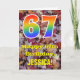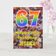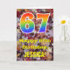 Die Vorderseite dieser bunten, rustikalen und naturlich inspirierten Geburtstagskarte zeigt eine große Zahl "67" mit einem Regenbogengefälle inspiriert Muster, zusammen mit der Meldung "Happy 67 th Birthday", und einem individuelle Name. Der Hintergrund der Vorderseite der Karte weist ein rustikales, gefallenes Herbstblatt-Muster auf. Im Inneren befindet sich eine bearbeitbare Geburtstags-Grußnachricht, oder man könnte sie löschen und leer verlassen werden, wenn eine Nachricht von Hand geschrieben werden soll. Eine solche individuelle Geburtstagskarte könnte eine lustige Art sein, Geburtstagwünsche jemandem zu senden, der seinen siebzigsten Geburtstag feiert. [~Z0000384]