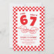 Celebrate turning seven with one of the biggest viral trends kids love! This fun 67 meme–inspired kids birthday party invitation features a bold red and white checkered background, the iconic “67” meme hands, and the playful saying “I was 6, now I’m 7.”