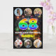 An der Vorderseite dieses fröhlichen und fröhlichen Geburtstagskarten-Designs steht die Zahl "68" mit einem farbenfrohen Regenbogenspektrum, inspiriert Farbverlaufsmuster, sowie die Meldung "HAPPY 68. BIRTHDAY" und ein benutzerdefinierbarer Name, auf einem farbenfrohen Feuerwerk inspiriert. Oben und unten auf der Vorderseite sind Bilder, die individuell angepasst werden können, vielleicht mit Fotos der Familie und Freunde des Empfängers. Im Inneren befindet sich eine personalisierte Geburtstagsgrüßbotschaft, oder man könnte sie löschen und leer verlassen werden, wenn eine Nachricht von Hand geschrieben werden soll. Eine positive, anpassbare Geburtstagskarte wie diese könnte eine lustige Art sein, jemandem, der seinen achtundsechzigsten Geburtstag feiert, Geburtstagswünsche zu schicken. (Fotografie © Storytree Studios, Stanford, CA.) [~Z000660]