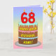 68th Birthday — Fun Cake & Candles, w/ Custom Name Karte