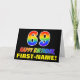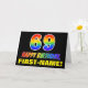 An der Vorderseite dieser fröhlichen, farbenfrohen und lustigen Geburtstagskartendesign stehen eine große Zahl "69" und die Meldung "HAPPY BIRTHDAY", beide mit einem inspirierten Farbverlauf des Regenbogenspektrums, zusammen mit einem kühnen gelben, benutzerdefinierten Empfängernamen. Die Vorderseite hat einen einfachen, minimalistischen, schwarzen Hintergrund. Im Inneren befindet sich eine personalisierte Geburtstagsgrüßbotschaft, oder man könnte sie löschen und leer verlassen werden, wenn eine Nachricht von Hand geschrieben werden soll. Eine farbenfrohe personalisierte Geburtstagskarte wie diese ist vielleicht eine lustige Art, jemandes neunundsechzigsten Geburtstag zu feiern. [~Z0000472]