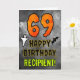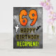 Die Vorderseite dieses beängstigenden und spöttischen Halloween-Geburtstagskarten-Design bietet eine große Zahl "69". Es enthält auch die Meldung "HAPPY BIRTHDAY", und einen anpassbaren Namen. Auf der Vorderseite sind auch Fledermaus und Gespenst dargestellt. Im Inneren befindet sich eine individuell anpassbare Geburtstags-Grußnachricht, oder vielleicht kann gelöscht und links werden, wenn eine Nachricht von Hand geschrieben werden soll. Eine personalisierte Geburtstagskarte wie diese könnte eine lustige Art sein, eine Nachricht zum Feiern des neunundsechzigsten Geburtstags von jemandem zu senden, der auch auf den 31. Oktober fällt (Halloween). [~Z0000547]