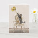 Graue Tischkatze mit Goldfolie-Ballons auf einem altmodischen Stuhl zum 69. Geburtstag.