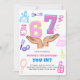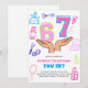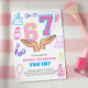 Beauty themed 6 7 Meme girls birthday invitation! Featuring a fun and colorful design with cute doodles of makeup, nail polish, and cosmetic brushes, this invite is perfect for any young girl turning seven who loves all things beauty and trendy. The bright pink and blue numbers '6' and '7' are playfully displayed with the iconic hand gesture. Perfect for a girly party centered around beauty, fun, and the latest internet trends