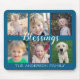 Dieses Mauspad bietet ein herzliches Design mit 6 Fotorahmen für Familienfotos. Die handgeschriebene Kalligrafie im trendigen Stil lautet: "Segnungen". Personalisieren Sie dieses blaue Mauspad mit Ihrem Familiennamen.