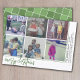 FRONT DESIGN: Eine Collage von 6 Fotos in einem einfachen Raster, um viele Bilder aus dem vergangenen Jahr zu markieren. Das Foto-Gitter ist nicht in der Mitte, und ein dünner Rand umgibt die Fotos. Moderne Optik für eine Urlaubskarte mit Avocado-grünen Akzenten und "fröhlichen Weihnachten" in einem großen, trendigen Script-Schriftart. Der Hintergrund ist weiß. BACK DESIGN: Das hintere Design enthält ein Blockmuster in grünen Farbtönen. Sie können diese Farbe im erweiterten Designbereich ändern.