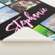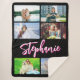 Ein schönes Licht lila große Sherpa Decke. Passen Sie Ihren Namen an, um Ihr eigenes personalisiertes Geschenk zu kreieren. Ändern Sie die Schattenfarben Weiß und Heiß Rosa sowie die schwarze Hintergrundfarbe. Es gibt viele schöne, moderne Kalligraphie-Schriftzeichen zur Auswahl. Sechs horizontale oder landschaftliche Fotos sind für sie in einer einfachen Rastercollage angeordnet.