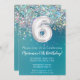 6. Geburtstag Einladung Aquamarin Silber Glitzer
