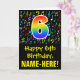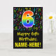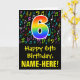 Die Vorderseite dieses lustigen, farbenfrohen und lebendigen Geburtstagskarten-Designs zeigt eine große Zahl "6" mit einem inspirierten Muster des Regenbogenspektrums, zusammen mit der Meldung "Happy 6th Birthday" und einem bearbeitbaren Empfängernamen. Die Vorderseite hat auch ein Muster verschiedener Musiknoten und Symbole mit verschiedenen Farben und Größen. Im Inneren befindet sich eine personalisierte Geburtstagsgrüßbotschaft, oder man könnte sie löschen und leer verlassen werden, wenn eine Nachricht von Hand geschrieben werden soll. Eine personalisierte Geburtstagskarte wie diese könnte eine lustige Art sein, jemandes sechsten Geburtstag zu würdigen. [~Z0000420]