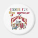 Der 6. Geburtstag des Zirkus mit Clown, Siegel, Elefanten, Affen, Löwen, Tiger, Zebra und farbenfrohen, lustigen Texten.