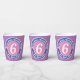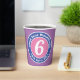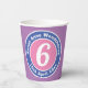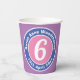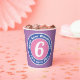 Erinnern Sie sich an einen 6. Geburtstag mit Papiertassen, die mit dem Namen des Kindes, seinem Alter und seinem Geburtsdatum geschmückt sind.
