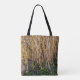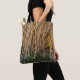 Diese Tote Tasche zeigt ein Originalfoto von ZoeSPEAK der Wurzeln einer Palme. Ein Hurrikan verdrängte den Baum, und das komplizierte Wurzelsystem wurde freigelegt, wobei die blond-weiß hervorgehobenen Wurzeln wie Haare aussehen und auf das grüne Gras unten dümpeln.