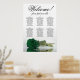 Diese schöne Hochzeitskarte verfügt über sechs Tische, an denen jeweils 10 Personen Platz finden und insgesamt 60 Personen Platz finden. Das Diagramm zeigt ein romantisches Design, das einen Single mit einer tief in Smaragdgrün gehaltenen Rose zeigt, die sich sanft auf der Seite ruht und in einem ruhigen Wasserbecken reflektiert. Der Titel des Diagramms, in eleganter Schriftzeichen dargestellt, lädt die Gäste herzlich ein mit "Willkommen! Bitte finden Sie Ihren Tisch", während Sie am unteren Ende genügend Platz für die Namen des Paares und das Hochzeitsdatum verlassen haben. Dieses Sitzdiagramm dient als eine wunderbare und praktische Möglichkeit, Ihre Gäste zu begrüßen und ihnen zu helfen, ihre Plätze am Empfang zu finden, und strahlt einen Charme und Eleganz aus.
