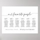 Minimalistische Hochzeitssitzkarte Unser Lieblingspersonal für 60 Gäste. Ein elegantes Design in Schwarz/Weiß oder einer beliebigen Hintergrundfarbe. Klicken Sie einfach auf den Link, um den Text anzupassen, der unter dem Bereich für die Textpersonalisierung rechts angezeigt wird, und wählen Sie Ihren eigenen Farbhintergrund aus. Dieses Schild Poster-Template macht es einfach und schnell, atemberaubende Ergänzungen zu Ihrer Hochzeitsdekoration zu erstellen. Die Zeichen können reduziert werden, es gibt viele Größen zur Auswahl, sowie Optionen für die individuelle Gestaltung und Anpassung.