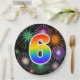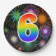 Dieses lustige, fröhliche und farbenfrohe Papier-Plattendesign zeichnet sich durch eine große Zahl "6" mit einem inspirierten Regenbogenspektrum aus. Es zeichnet sich auch durch ein spannendes und lebendiges, aufstrebendes Feuerwerk inspiriert Muster aus. Es hat einen schwarzen Hintergrund. Teller wie diese können bei Jemandem zum 6. Geburtstag, bei einem 6. Jubiläum oder bei einem anderen 6. [~Z0000490]