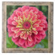 Ein wenig Schönheit in Ihrem Leben mit einer Keramik Kachel mit einem Foto von einem auffallenden rosa Zinnia umgeben von einer Grenze aus den einzigartigen Mustern in Baumrinde gefunden. Die Tile können einzeln oder kombiniert mit einem Holzrahmen verwendet werden, als Trivet oder mit einer Holzkiste verwendet werden und als einmalige Sake-Box verwendet werden.