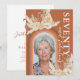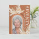Rustikale böhmische 70. Geburtstagsfeier mit einem verbrannten orangefarbenen Hintergrund mit Regenbogenbogenarmatur, einem Foto des Geburtstagsmädchens, wasserfarbenen Blätter aus der Wüste, Pampas Gras, Blumenblättern und einer eleganten seventieth-Feierungstext-Vorlage auf der Rückseite, die leicht zu personalisieren ist.