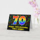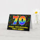 Dieses fröhliche, aufregende und farbenfrohe Geburtstagskarten-Design zeigt eine große Zahl "70" mit einem inspirierten Regenbogenspektrum. Es enthält auch die Meldung "Happy 70 th Birthday", und einen benutzerdefinierten Empfänger-Namen. Die Vorderseite hat auch ein Muster verschiedener Musiknoten und Symbole mit verschiedenen Farben und Größen. Im Inneren befindet sich eine personalisierte Geburtstagsgrüßbotschaft, oder man könnte sie löschen und leer verlassen werden, wenn eine Nachricht von Hand geschrieben werden soll. Eine so individuell gestaltete Geburtstagskarte könnte eine lustige Art sein, einem Sänger, einem Musiker, einem Musikkomponisten oder jemand anderem, der seinen siebzigsten Geburtstag feiert, Geburtstagswünsche zu schicken. [~Z0000426]