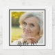 Ein schmaler, weißer und schwarzer Rahmen und Vorlage für Ihr Foto. Schwarzer Text Overlay: Hallo 70! Ein Label für eine 70. Geburtstagsfeier.