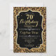 Einladung zum 70. Geburtstag. Elegantes Schwarz-weißes Design mit Imitate Glitzer Gold. Features Leopard Gepard-Tier Druck und Skript-Schriftart. Ideal für eine elegante Geburtstagsfeier. Kann in jedes Jahr personalisiert werden! Nachricht, wenn Sie weitere Anpassungen benötigen.