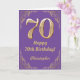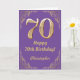 70. Geburtstag Lila und Gold Glitzer Frame Karte