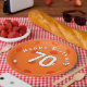 Nah-up eines orangen pickleball für einen 70. Geburtstag. Alle Texte können geändert oder gelöscht werden.