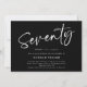 Das ist eine elegante, moderne 70. Überraschungsgeburtstagsfeier. Es ist ein einfaches und stilvolles, handgeschriebenes Skriptdesign in klassischem Schwarz/Weiß. Bitte kontaktieren Sie den Designer, wenn Sie Fragen zu diesem Design haben.