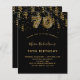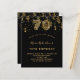 Eine moderne, stilvolle und glamouröse Einladung zu einer 70. Geburtstagsfeier. Schwarzer Hintergrund, mit Konfetti dekoriert. Der Name ist mit einem modernen handgeschriebenen Stilskript geschrieben. Personalisieren Sie Ihre Party-Daten und fügen Sie sie hinzu. Die Nummer 70 ist mit einem angesagten Schriftart im Ballonstil, Leopardenmuster geschrieben.