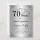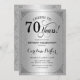 Einladung zum 70. Geburtstag. Elegantes Vintages Imitat silberfarbenes Design mit Damast-Muster. Enthält Skript-Schriftart. Feiert bis 70 Jahre! Kann in jedem Alter personalisiert werden! Nachricht, wenn Sie weitere Anpassungen benötigen.