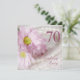 Ein wunderschönes zartes Bild von Gänseblüten in sanften rosa Tönen. Im Hintergrund ist eine Perlenkette. Der ganze Effekt ist weich und altmodisch. Eine schöne 70. Geburtstagsfeier. Ändern Sie den Rücken in Ihre eigenen Party-Details
