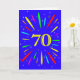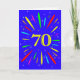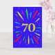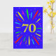 Eine explosive 70. Geburtstagskarte! Was für eine wunderbare Art, Geburtstagsgrüße zu schicken. Die Zahl 70 in hellgelb mit einer Explosion von hellen Farben und Sternen.